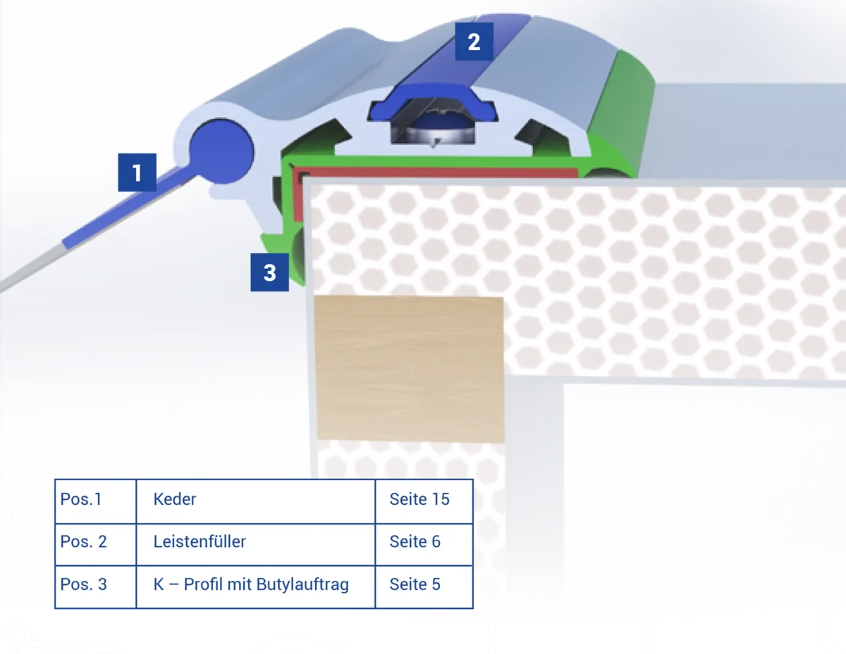 Ein Anwendungsbereich ist z.B. die Karosserieabdichtung von Caravans und Verkaufsfahrzeugen. Hier werden die Anschluss bereiche zwischen Wand- und Dachaufbau wirkungsvoll und zuverlässig gegen Feuchtigkeit versiegelt.
